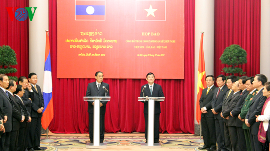 Ngày 26/12, tại Phủ Chủ tịch, Chủ tịch nước Trương Tấn Sang và Tổng Bí thư, Chủ tịch nước Lào Chum-ma-ly Xay-nha-xỏn đã cùng chủ trì họp báo công bố thành công Năm Đoàn kết hữu nghị Việt Nam - Lào, Lào - Việt Nam 2012.