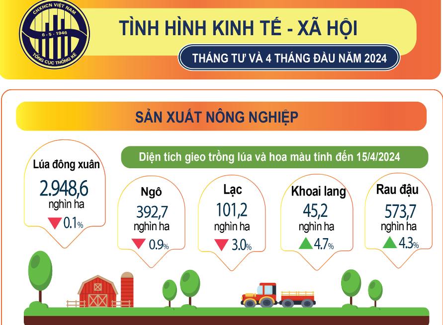 Tổng cục Thống kê vừa công bố báo cáo tình hình kinh tế - xã hội tháng 4 và 4 tháng đầu năm 2024, cho thấy tình hình kinh tế - xã hội khởi sắc trên nhiều lĩnh vực.