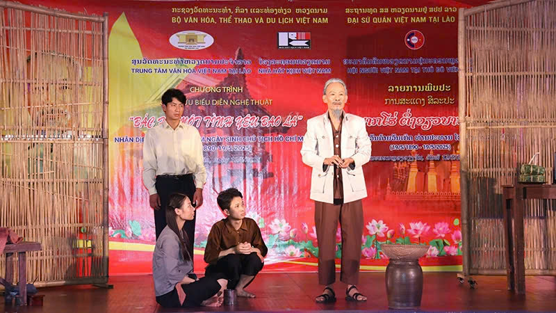 Chiều 12/5, tại thủ đô Vientiane, Lào, Trung tâm Văn hóa Việt Nam tại Lào phối hợp Nhà hát kịch Việt Nam tổ chức Chương trình giao lưu nghệ thuật với chủ đề “Bác Hồ một tình yêu bao la” nhân kỷ niệm 135 năm ngày sinh Chủ tịch Hồ Chí Minh và 105 năm ngày sinh Chủ tịch Kaysone Phomvihane.