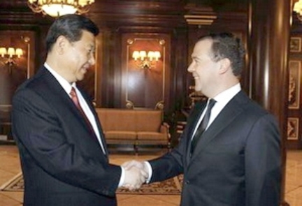 Chiều 23/3, tại dinh thự Gorki ở ngoại ô Matxcơva, Thủ tướng Nga Dmitry Medvedev đã hội đàm với Chủ tịch nước Trung Quốc Tập Cận Bình đang ở thăm chính thức cấp nhà nước Liên bang Nga từ ngày 22 - 24/3.