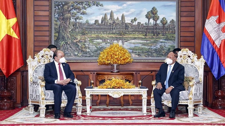 Hai nhà lãnh đạo nhấn mạnh Việt Nam và Campuchia là hai nước láng giềng gần gũi, có truyền thống đoàn kết, ủng hộ và giúp đỡ lẫn nhau - là niềm tự hào và là tài sản vô giá của hai dân tộc mà các thế hệ mai sau của hai nước cần tiếp tục duy trì, gìn giữ và phát huy, minh chứng là việc hai nước thời gian qua đã hỗ trợ lẫn nhau rất kịp thời, hiệu quả trong công tác phòng chống dịch COVID-19.