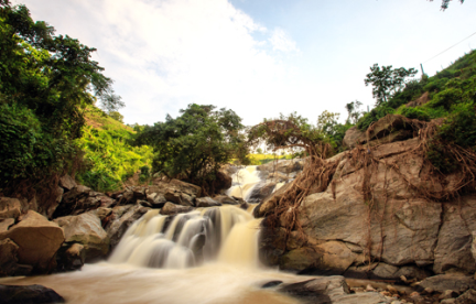 Cách thành phố Lào Cai hơn 20 km, thác Bản Vược (Bát Xát) mùa này thật hùng vĩ. Hiện đang là mùa mưa, vì thế nước từ thượng nguồn đổ xuống suối rất nhiều, tạo nên dòng thác lớn. Nếu chiêm ngưỡng từ xa, sẽ ngỡ như tấm vải lụa màu trắng khổng lồ vắt ngang rừng.
