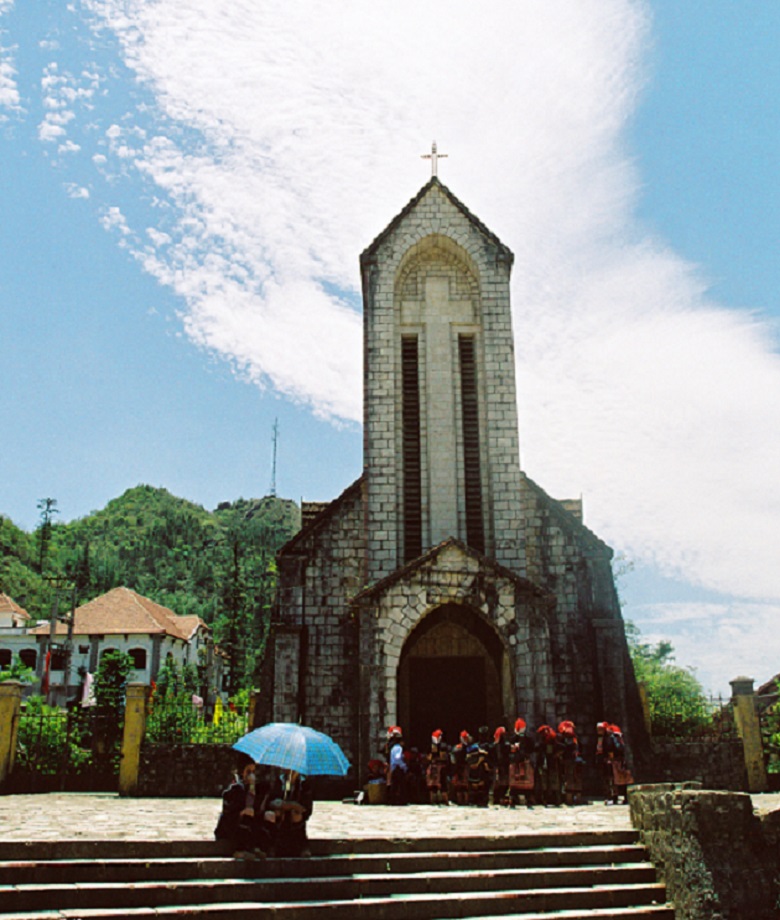 Nhà thờ đá Sa Pa là một trong số ít kiến trúc của người Pháp còn lại nguyên vẹn nhất ở Sa Pa. Nhà thờ được người Pháp xây dựng từ đầu thế kỷ 20 ở ngay trung tâm thị trấn Sa Pa. Sau nhiều lần trùng tu khu giáo đường nhà thờ vẫn còn lưu trữ vẻ đẹp nguyên gốc, tháp chuông cao 26m. Các bức tường đá hệ thống mái vòm. Bên trong khu thánh đường là 32 ô cửa kính màu với các hình chúa, đức thánh. Thật thú vị khi dưới ánh nắng chiếu qua sẽ tạo ra một bức tranh đẹp lung linh nhiều màu sắc.