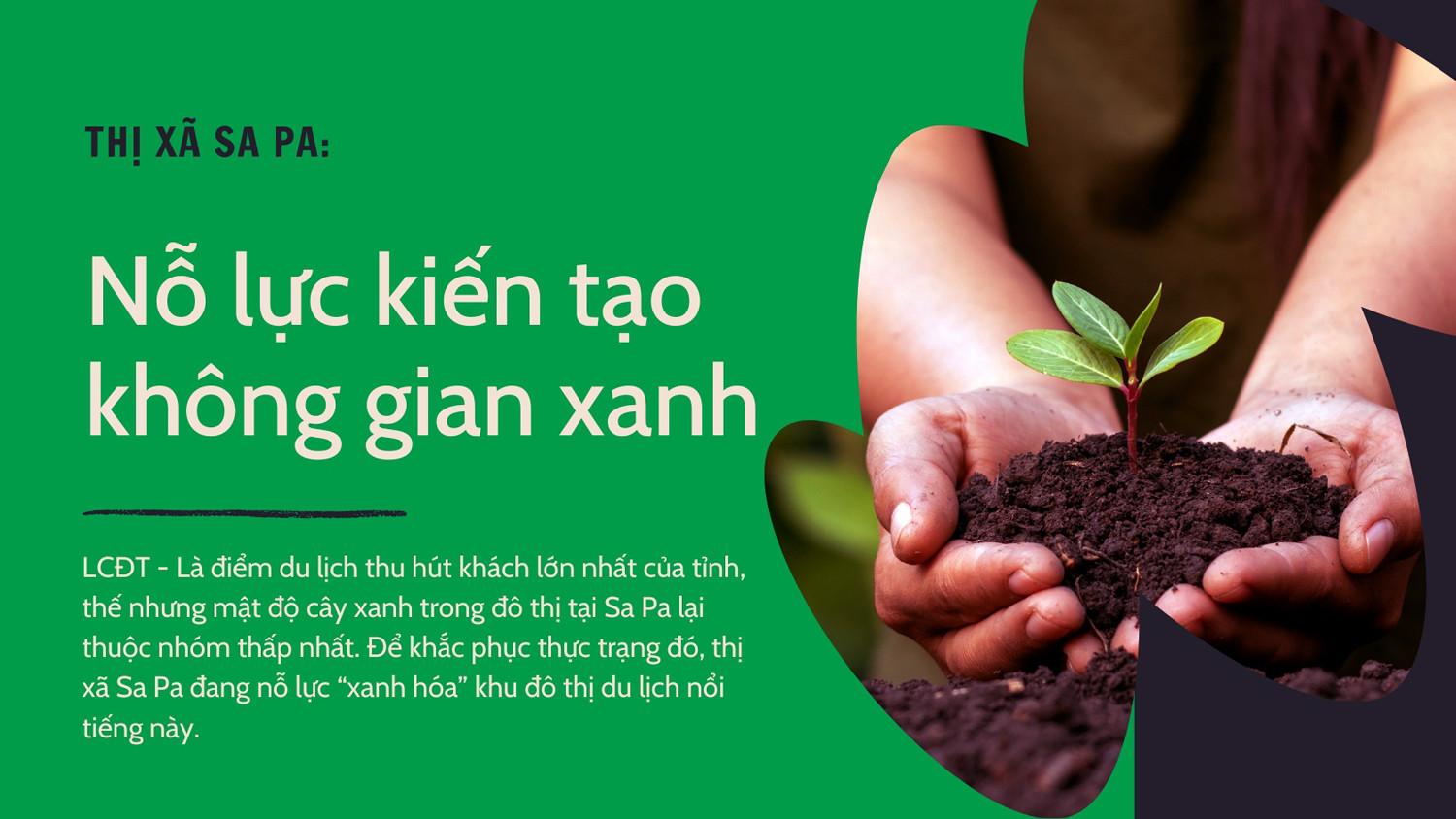 Là điểm du lịch thu hút khách lớn nhất của tỉnh, thế nhưng mật độ cây xanh trong đô thị tại Sa Pa lại thuộc nhóm thấp nhất. Để khắc phục thực trạng đó, thị xã Sa Pa đang nỗ lực "xanh hóa" khu đô thị du lịch nổi tiếng này.