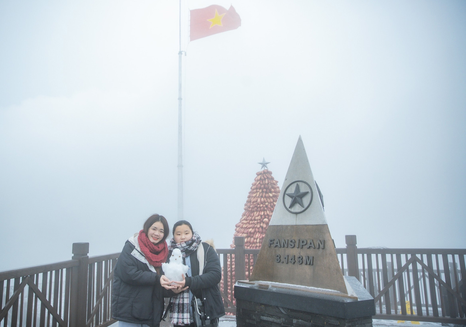 Sau những thông tin về tuyết rơi trên đỉnh Fansipan vào sáng 28/12, rất đông du khách đã lên khu vực "nóc nhà Đông Dương" (thị xã Sa Pa) và may mắn được chiêm ngưỡng cảnh tượng thiên nhiên kỳ thú này.