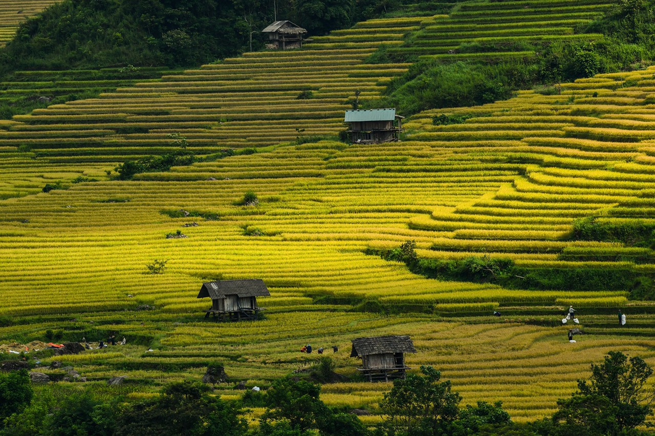 Thị trấn Mường Khương cuối tháng 8 như được nhuộm vàng bởi những cánh đồng lúa chín chuẩn bị vào vụ thu hoạch.