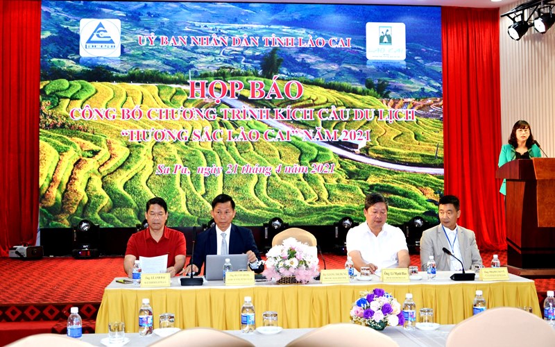 Ngày 21/4, tỉnh Lào Cai tổ chức họp báo công bố các giải pháp kích cầu du lịch năm 2021. Đồng chí Giàng Thị Dung - Phó Chủ tịch UBND tỉnh chủ trì buổi họp báo.
