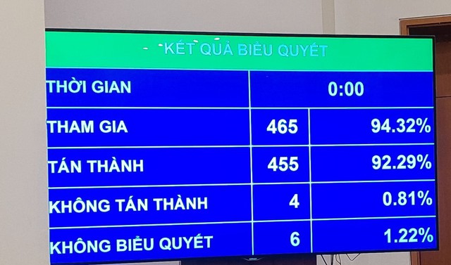 Nghị quyết về một số cơ chế, chính sách đặc thù thực hiện các chương trình mục tiêu quốc gia được Quốc hội thông qua vào sáng 18/1 với 455/465 đại biểu tham gia biểu quyết tán thành.
