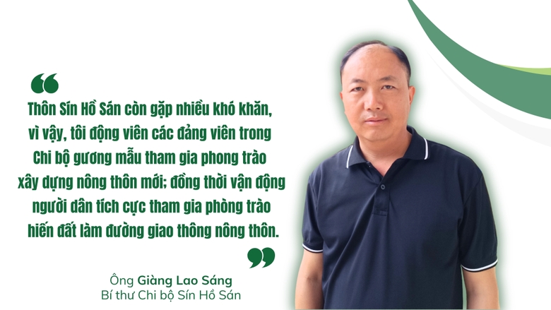 Ông Giàng Lao Sáng, 40 tuổi, dân tộc Mông, Bí thư Chi bộ thôn Sín Hồ Sán, xã Sán Chải (Si Ma Cai) luôn nhiệt tình, trách nhiệm với công việc của thôn và được đảng viên, người dân trong thôn tín nhiệm, quý mến.