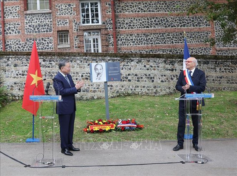 Trưa 6/10, Tổng Bí thư, Chủ tịch nước Tô Lâm cùng Đoàn đại biểu cấp cao Việt Nam đã tới thành phố Sainte-Adresse dự lễ khánh thành biển kỷ niệm mang tên Chủ tịch Hồ Chí Minh; thăm Tòa thị chính thành phố Saint-Adresse