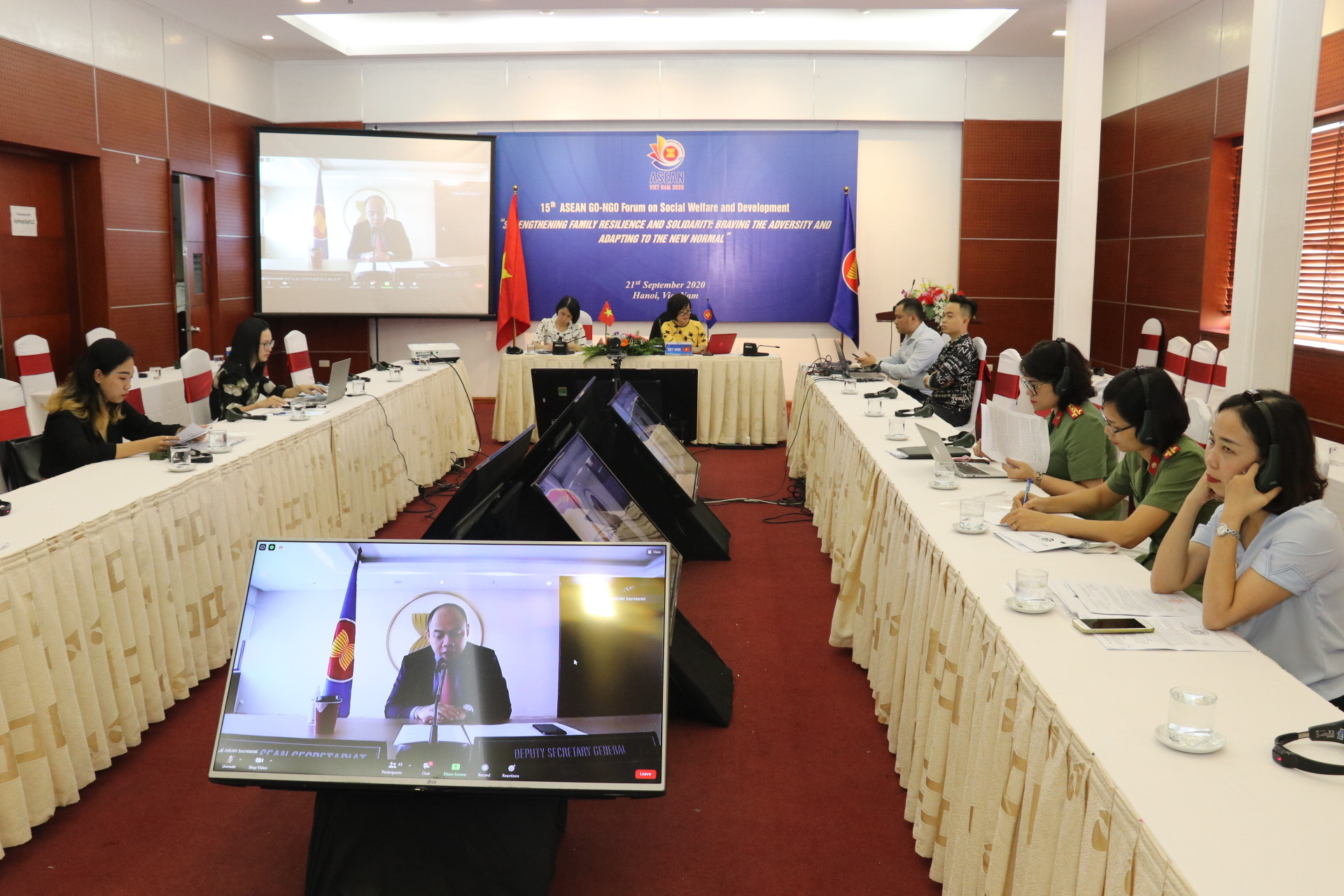Diễn đàn chính phủ - phi chính phủ ASEAN (GO-NGO ASEAN) về phúc lợi xã hội và phát triển lần thứ 15 với chủ đề "Tăng cường khả năng phục hồi và đoàn kết của gia đình: Vượt qua nghịch cảnh và thích nghi với trạng thái bình thường mới" vừa diễn ra dưới hình thức trực tuyến.