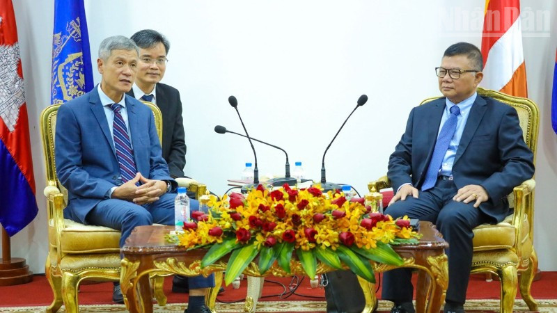 Campuchia ủng hộ đề xuất thiết lập đường dây nóng và nhóm công tác song phương trong nỗ lực triệt phá các mạng lưới lừa đảo trực tuyến. Đó là khẳng định của Trưởng Ban Thư ký Ủy ban Chống lừa đảo trực tuyến Campuchia Chhay Sinarit tại cuộc gặp Đại sứ Việt Nam tại Campuchia Nguyễn Minh Vũ ngày 23/7.