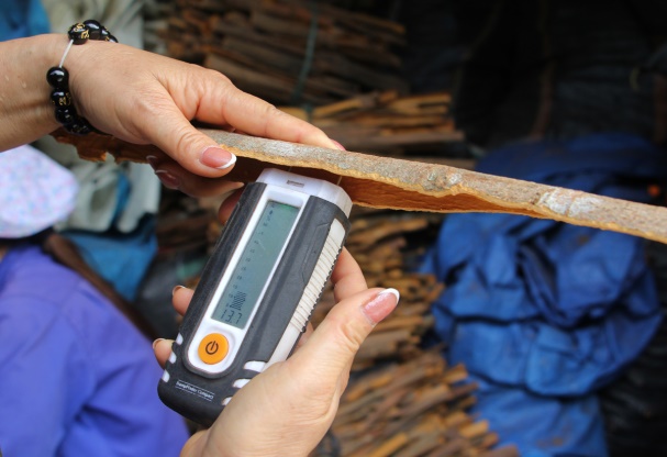 这工厂的主人Ta Thi Hoi女士说:桂皮的出口需求非常大,但由于现有工厂的面积属于计划区内,无法扩大生产(照片中:Hoi女士在检查产品的干燥度)。