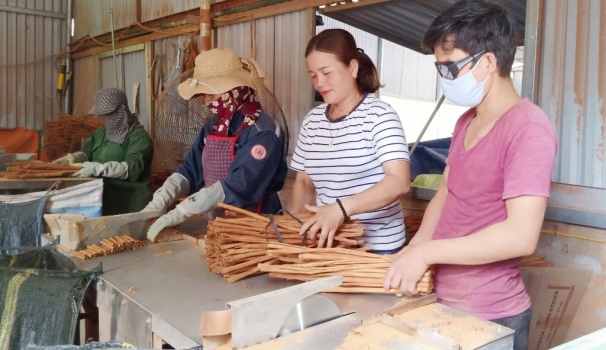 在该村一起使用约面积建造工厂和生产区的目的,以满足越来越增长的出口需求。上述两个市场。企业希望有相关的机构制造有利条件来加快处理时间(照片中:切割桂皮产品以确保客户要求的长度)。