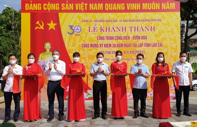 9月28日上午,老街市Pom Han区为庆祝老街省建市30周年(1991年10月1日—2021年10月1日)举行公园 - 花园落成典礼。