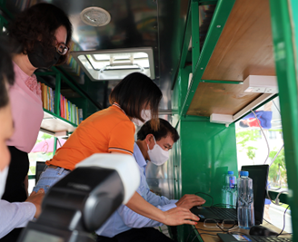 以建立和形成阅读习惯为目的,过去“多媒体移动图书馆车”的模式犹如一股清风,帮助学生,特别是偏远地区的学生有条件获取信息和知识,带来趣味性。为读者带来阅读体验,为提高人们的智力水平做出贡献,逐步在基层建立阅读文化。为支持孩子们的学业,与会代表和学校学生参观并体验了图书展示展台,并在省图书馆的流动图书车上阅读图书。