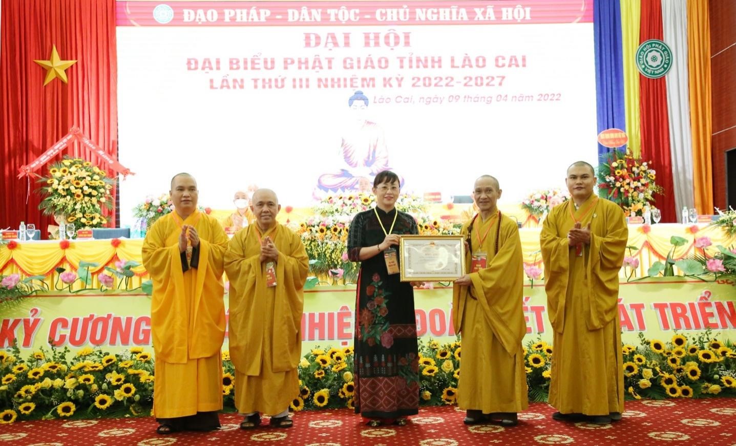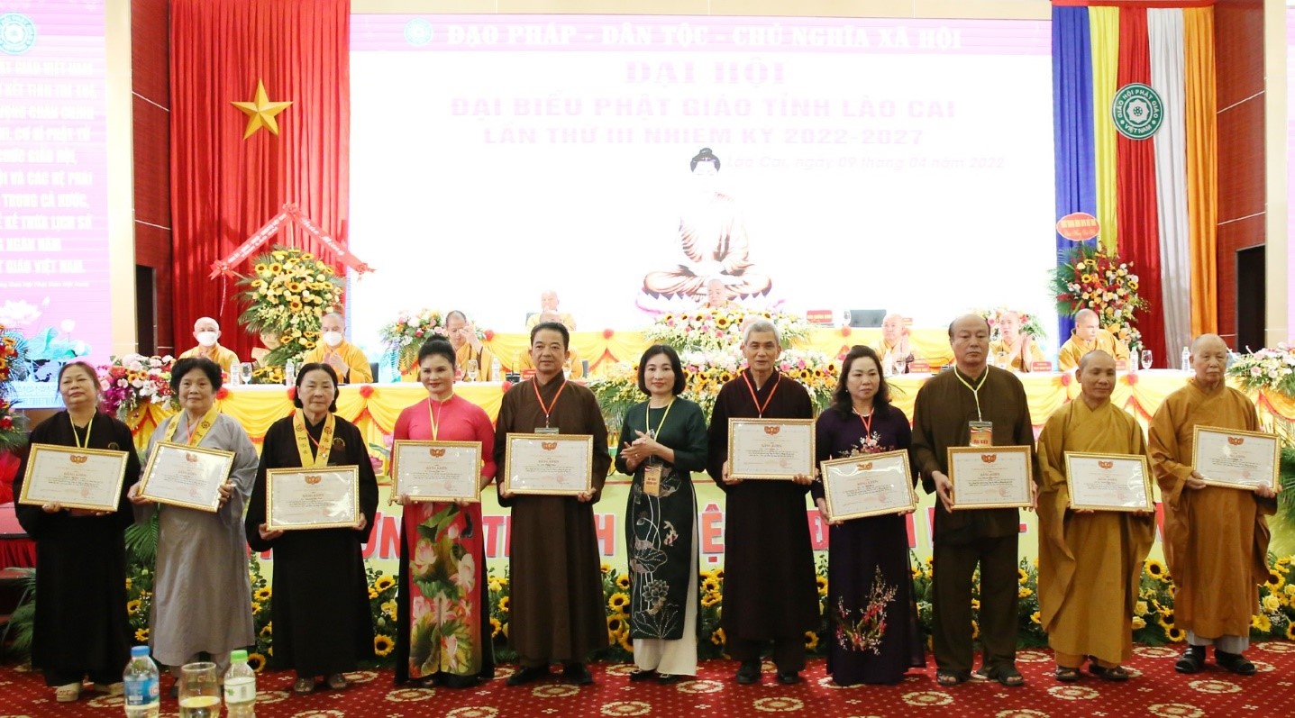 值此之际,越南佛教僧伽执行委员会主席向老街省越南佛教僧伽执行委员会及19人颁发了功勋证书;老街省人民委员会主席向老街省越南佛教僧团执行委员会及5人颁发功绩证书;老街省越南祖国阵线委员会向10人颁发了奖状。