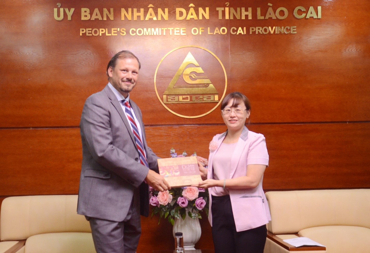 省人民委员会副主席Giang Thi Dung接见来访老街的加拿大国际学校代表团