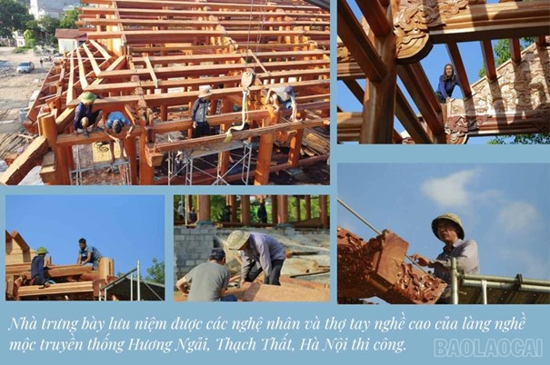 纪念品陈列室按照北方传统木屋建筑设计,纪念空间内已有5个隔间。这所房子由河内石塔县香奈传统木工村的工匠和技术工人花了近半年的时间建造而成。