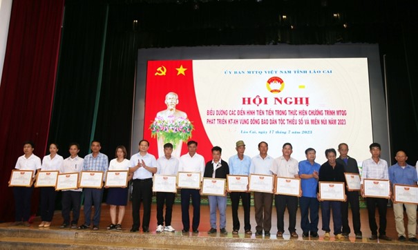 会上,老街省越南祖国阵线委员会向50名在落实2021-2023年少数民族和山区经济社会发展国家目标计划中取得突出成绩的优秀个人颁发了奖状。