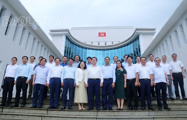 老街省方面,迎接并与代表团一起工作的同志有:省委副书记Hoang Giang,省委常委、省人民委员会常务副主席Hoang Quoc Khanh;省委常委、宣传部部长Duong Duc Huy。