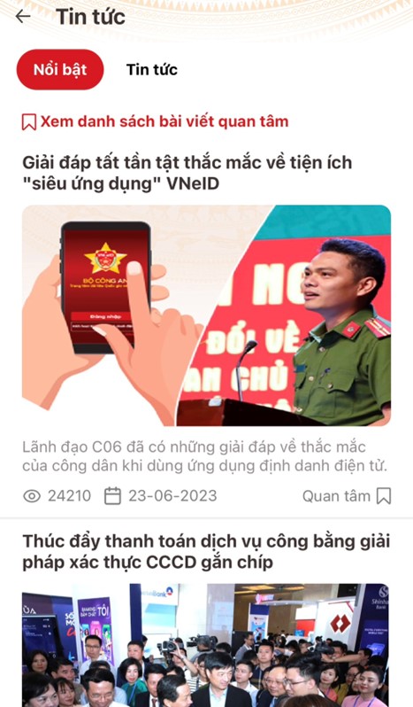 06项目的关键内容之一是二级电子身份识别账户(VNeID)的应用,该账户与芯片嵌入式CCCD卡和文件和文件(驾驶执照、登记车辆登记、健康保险卡、住所信息等)将信息整合到账户后。人们使用二级电子身份识别账户,信息得到保密,避免被篡改,在办理行政手续、民事交易、公共服务等方面节省大量时间和成本,在线提出建议,反思安全秩序情况、谴责、举报犯罪行为、...