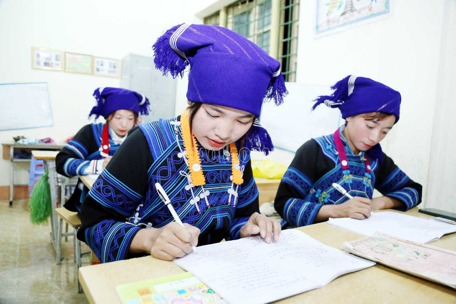 高山乡镇为少数民族同胞开设了许多扫盲班,为尚未识字的哈尼族妇女创造了上学机会,使她们能够学会阅读和书写。