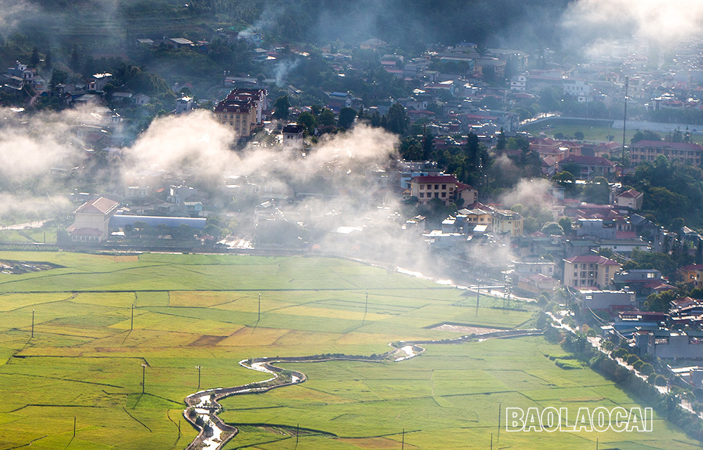 八月底的Muong Khuong镇似乎被准备收割的成熟稻田染成黄色。