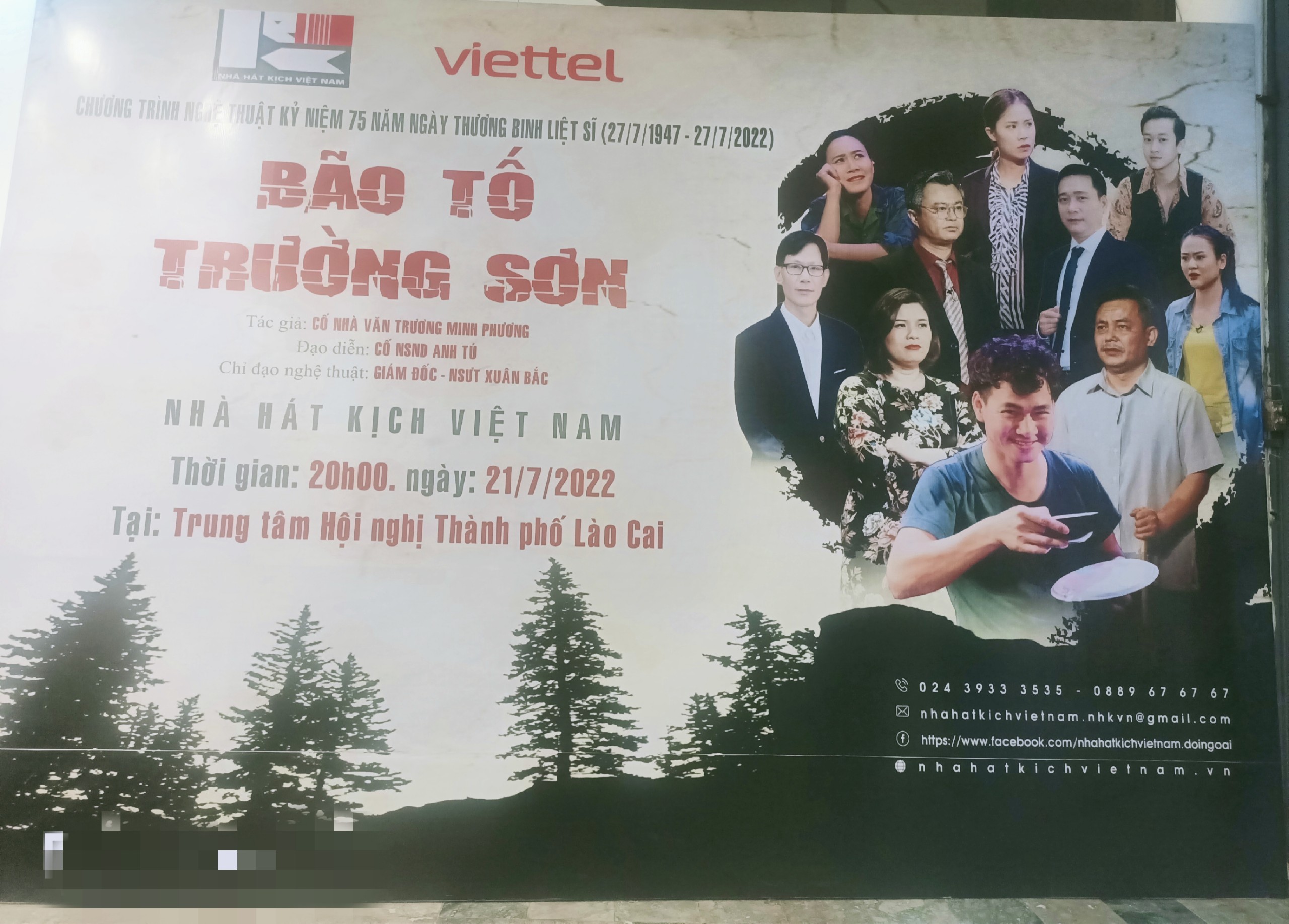 7月21日晚,在荣军烈士纪念日(1947年7月27日-2022年7月27日)75周年之际,在老街市会展中心,文化体育厅协调文化体育部 越南话剧团组织演出话剧《长山风暴》。
